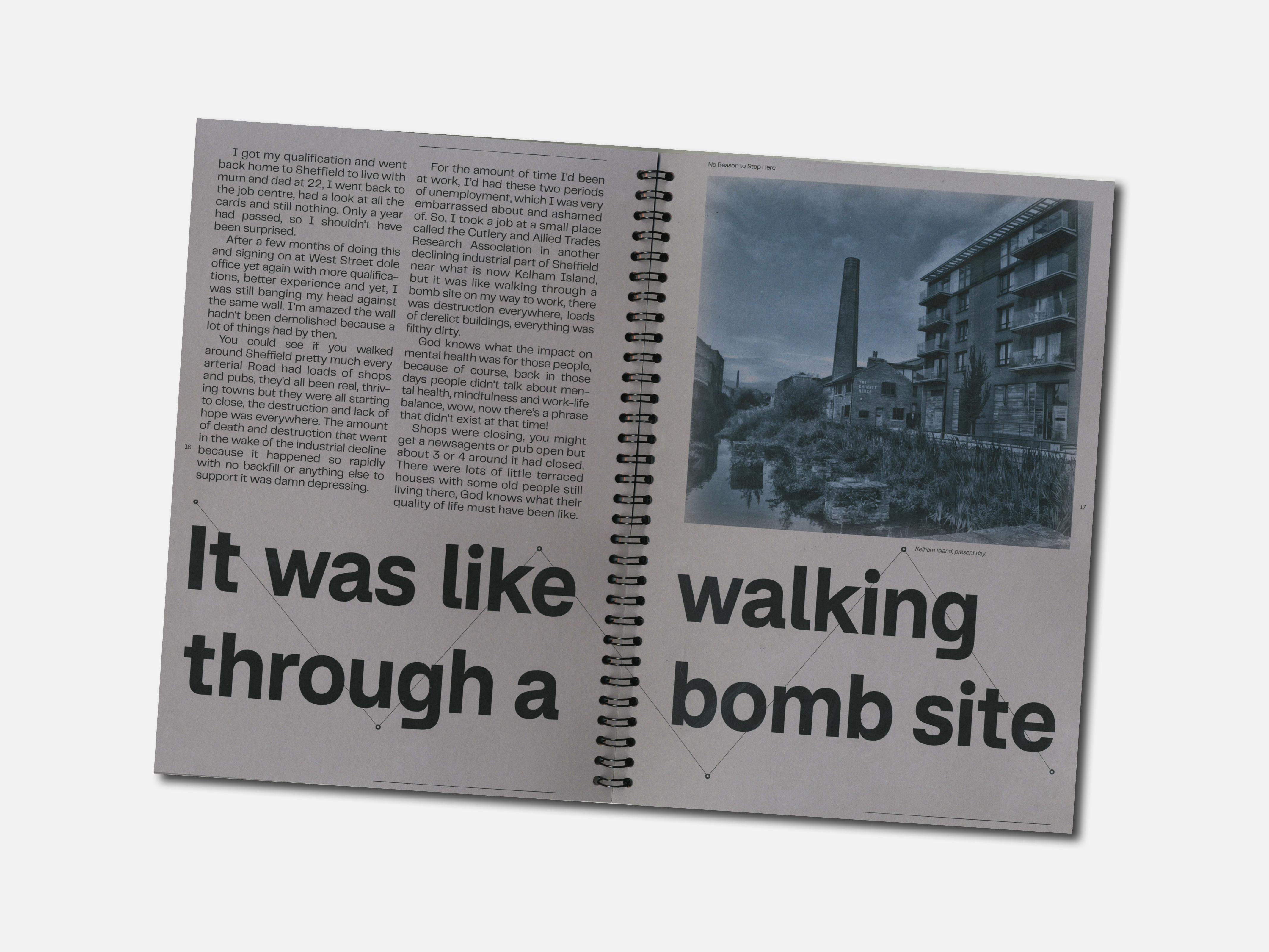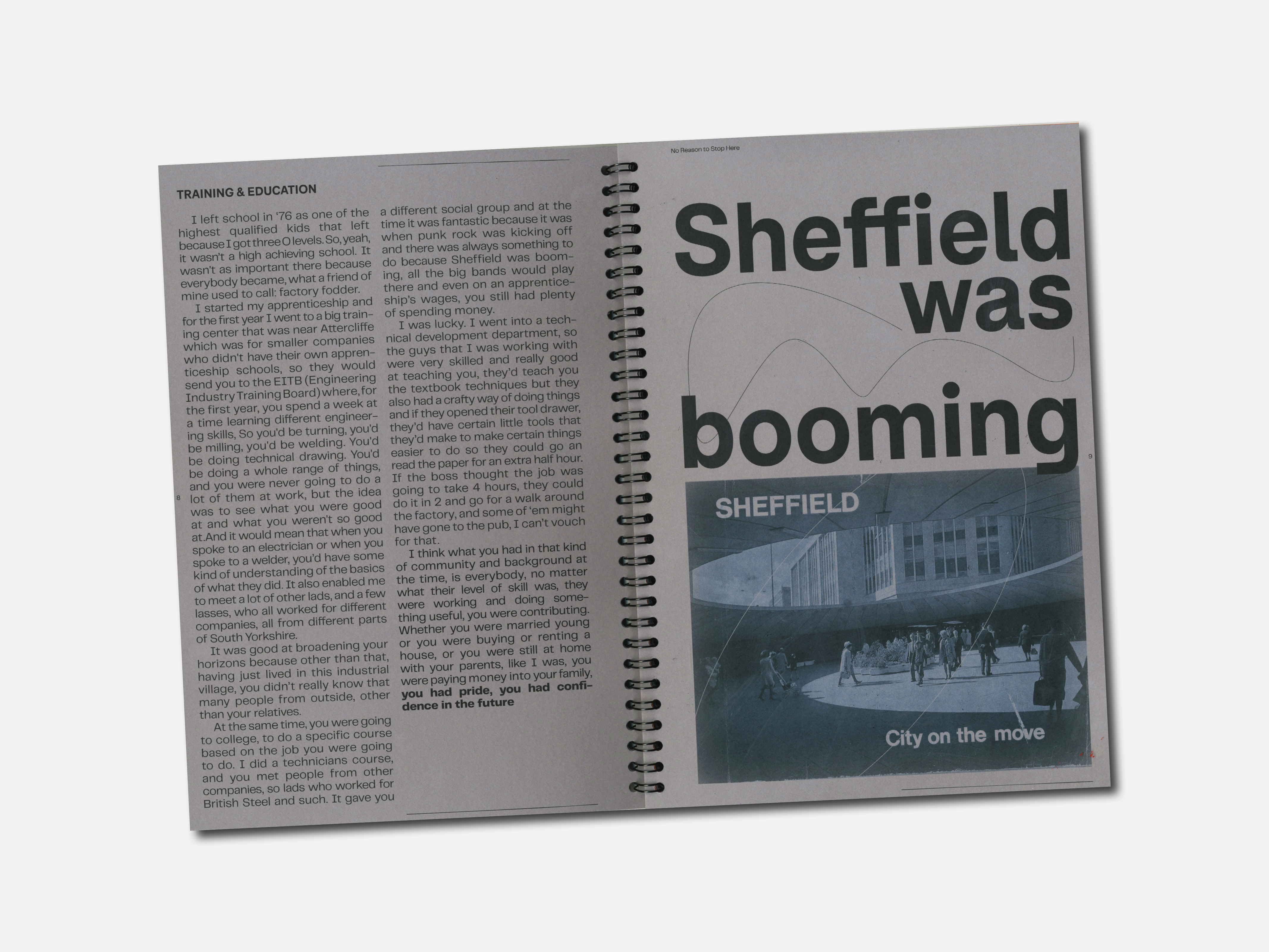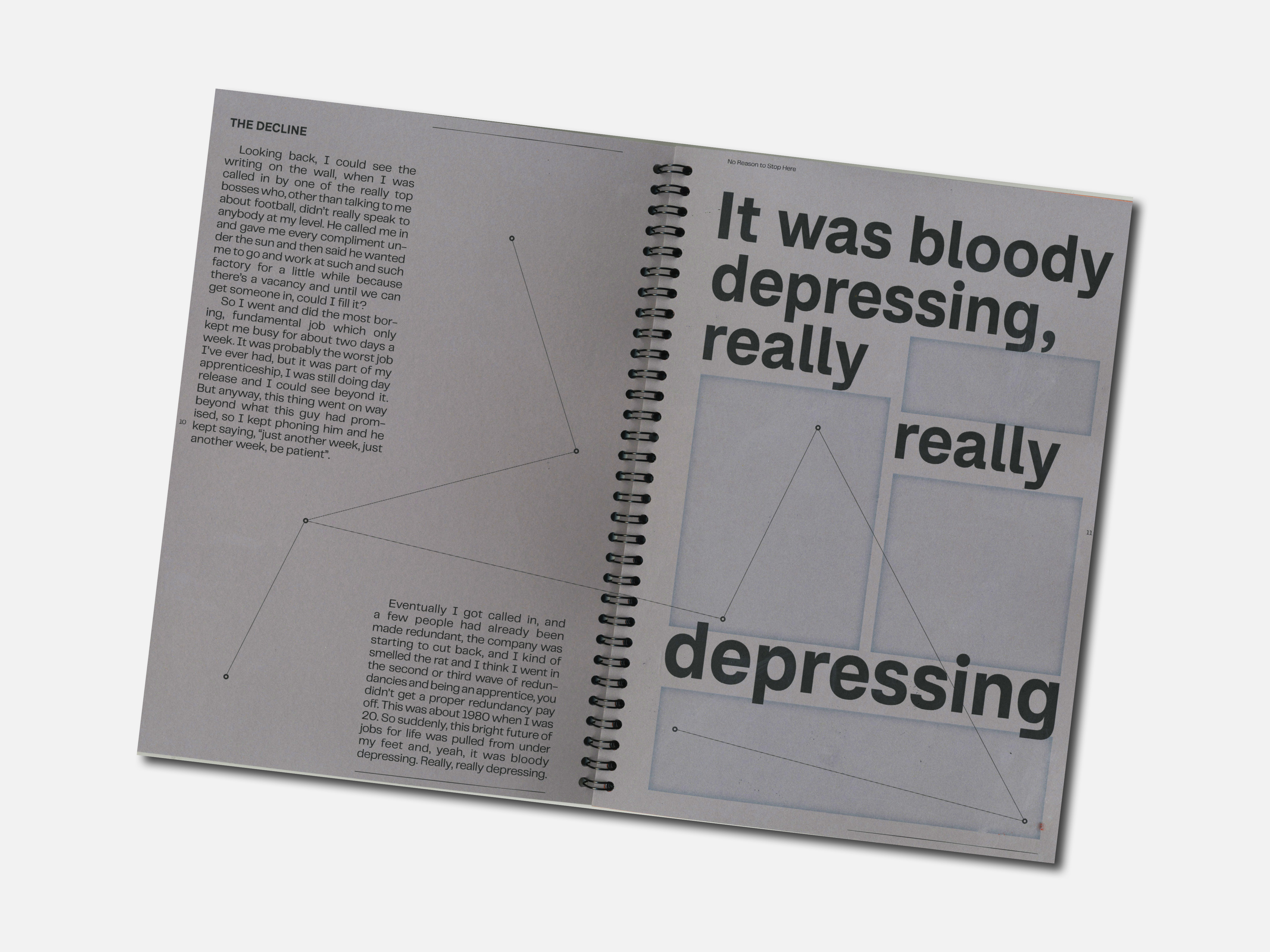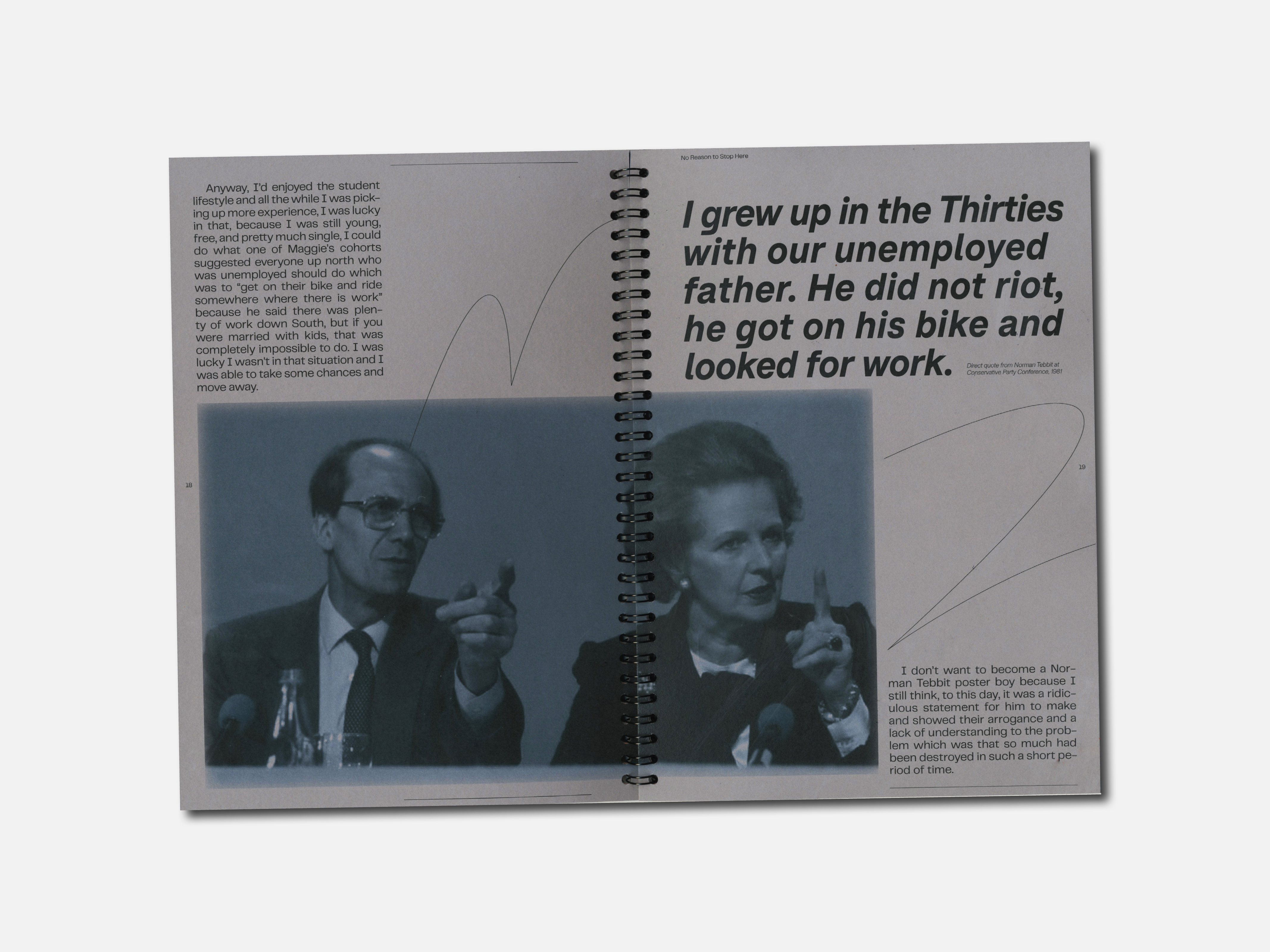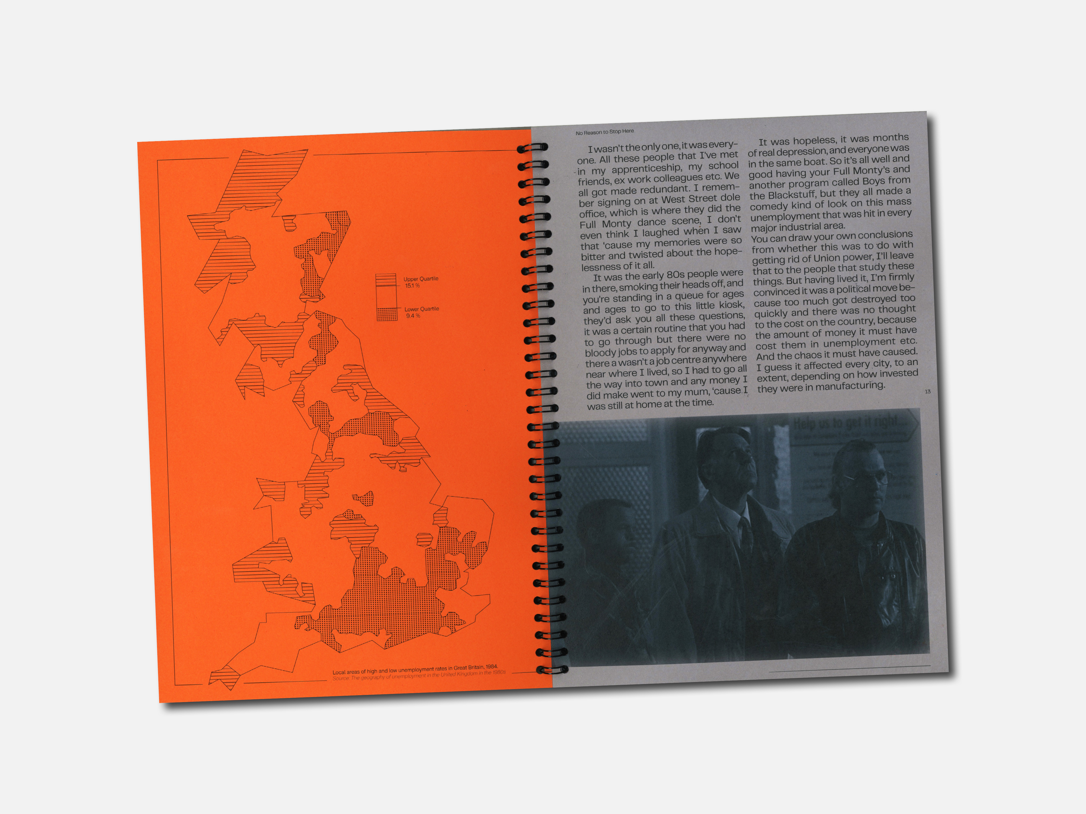 No Reason to Stop Here is a publication which explores how the fall of British industry had a direct effect on working-class communities.