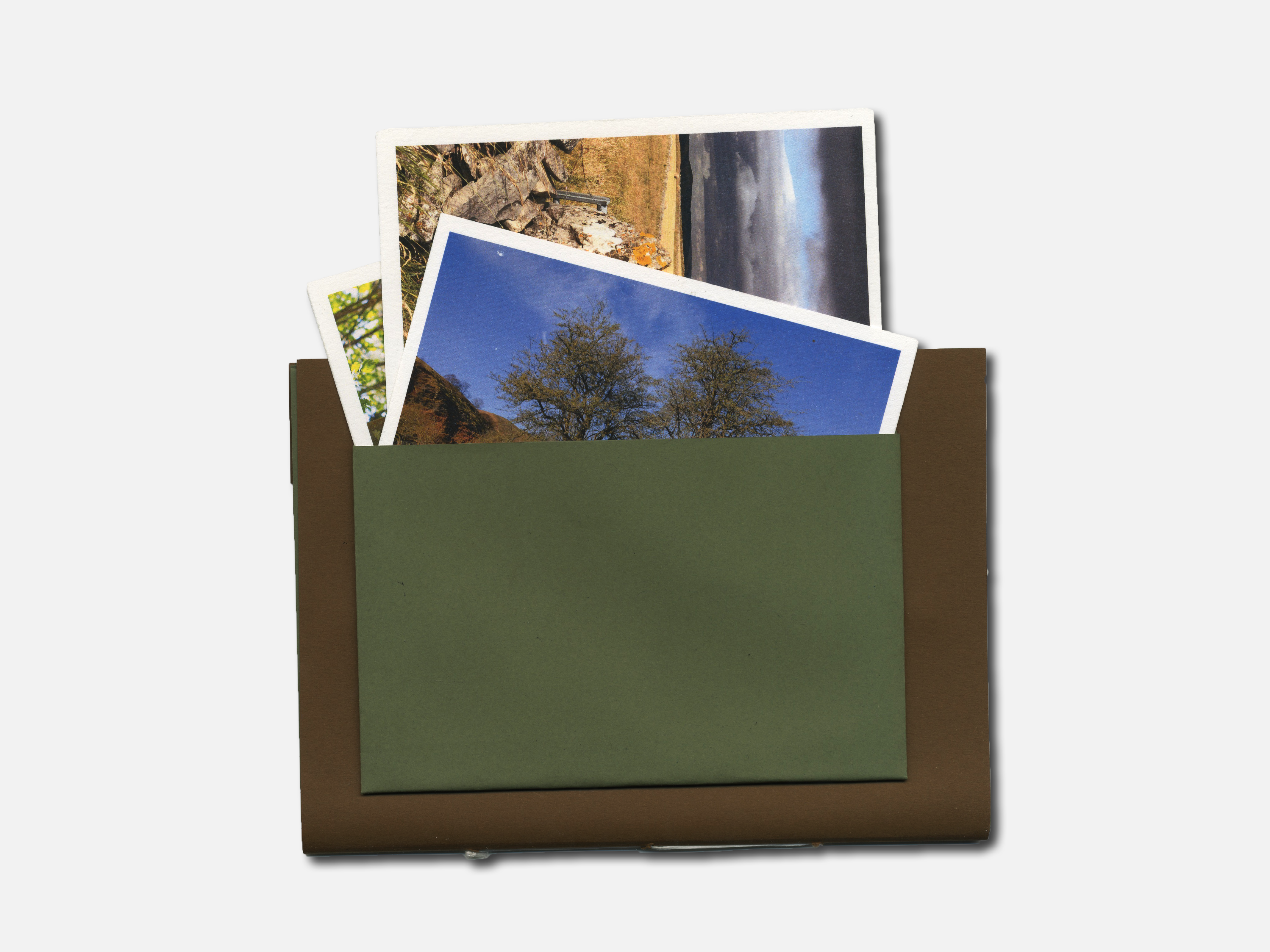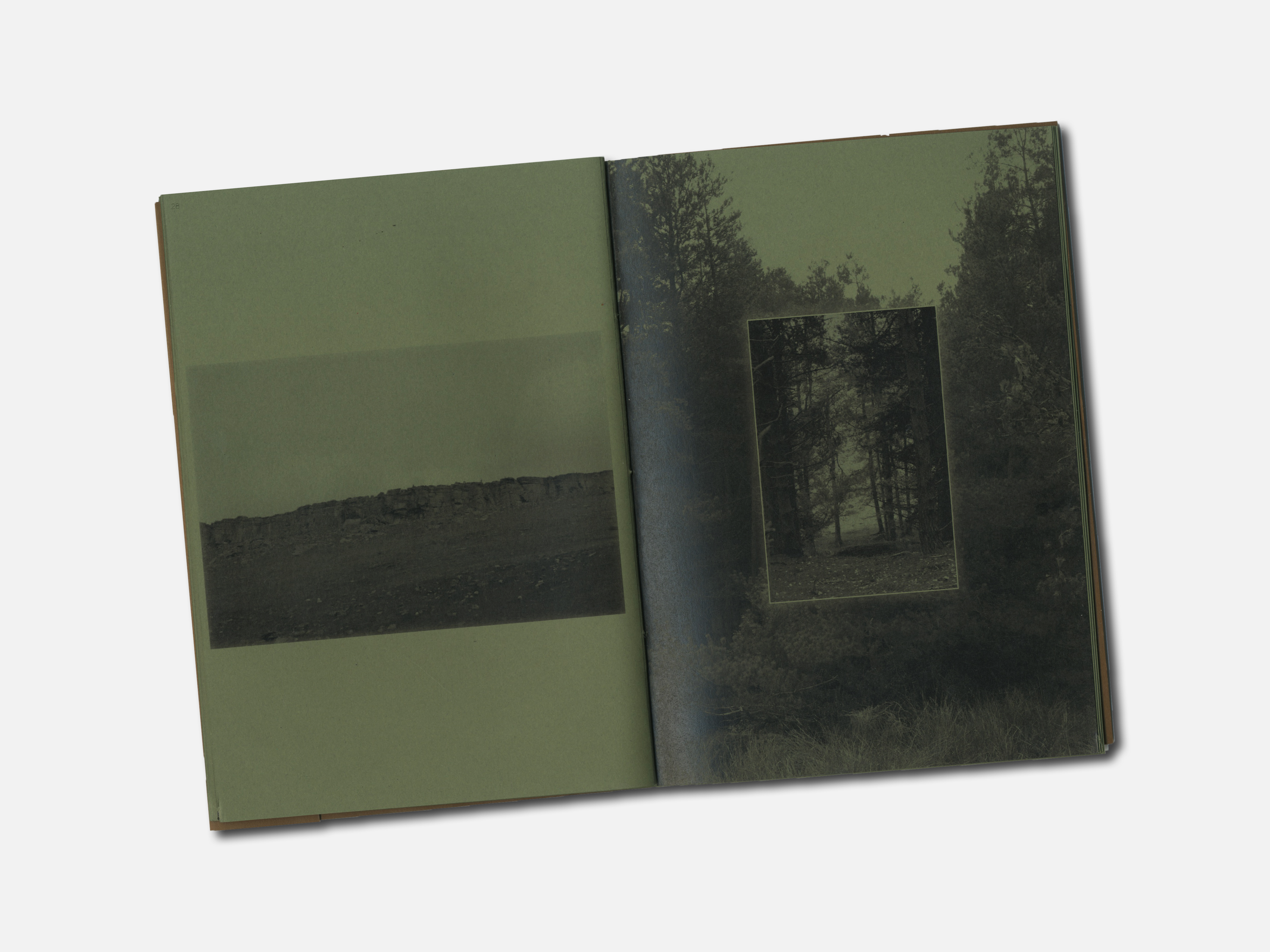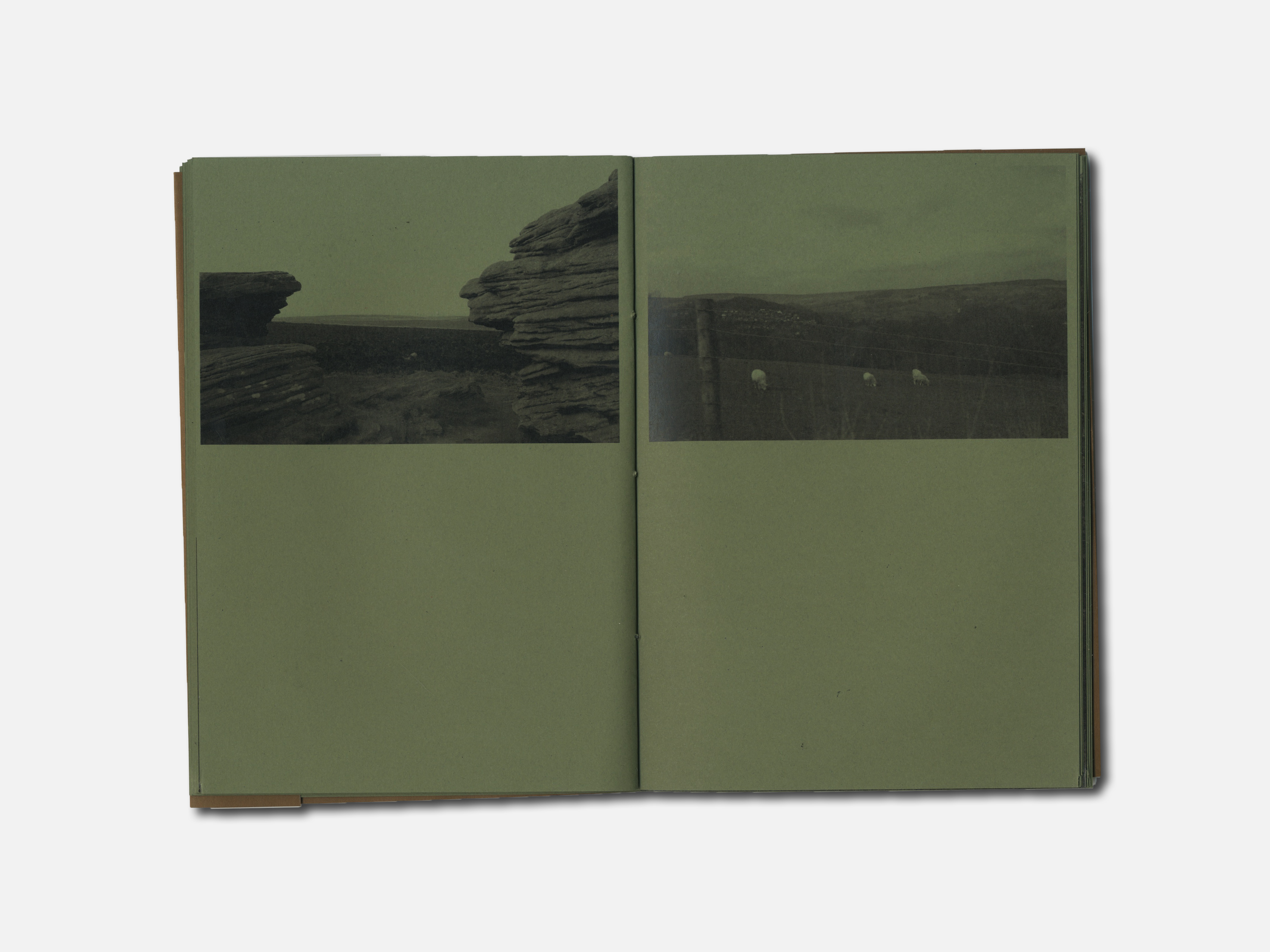 ︎︎︎ Materials: 120 gsm forest green (body stock), 120 gsm earth brown (cover), 250gsm textured card stock (postcards).