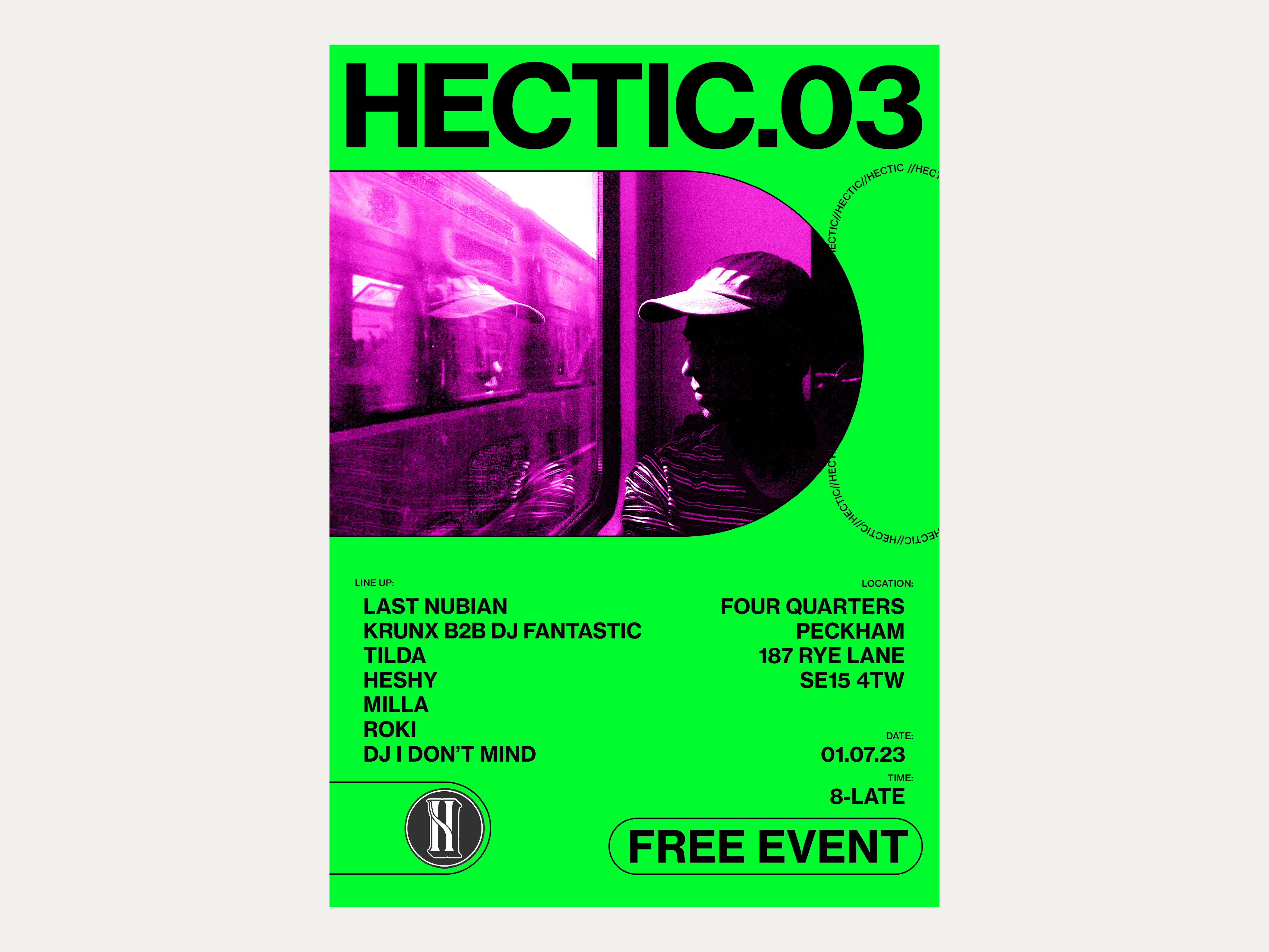 The organisers of HECTIC, a music collective based in London, hired me on a long-term basis to design the promotional posters for their regular music events.